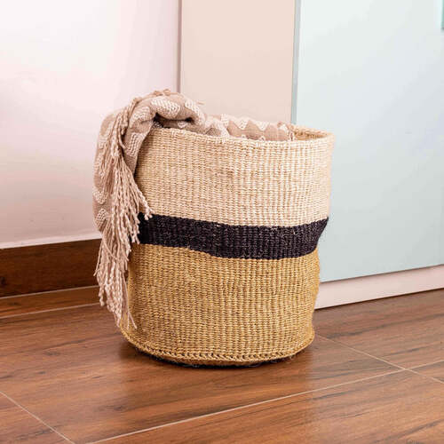 Organize in style with our woven African clothes basket. Handcrafted for durability and adorned with traditional patterns, it adds cultural charm to any space while keeping your laundry neatly tucked away.