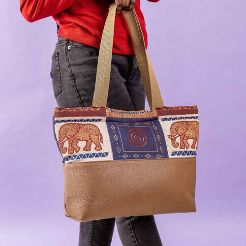 Authentic Leather Afri Tote Bag with Ankara Strip