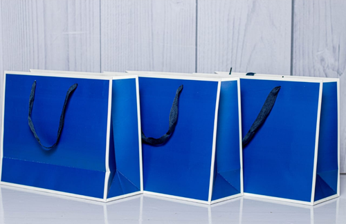 Stylish blue glossy gift bags with white lining, perfect for corporate gifting, retail packaging, weddings, and special occasions. Durable, elegant, and eco-friendly packaging from Etoda Gifts Kenya.