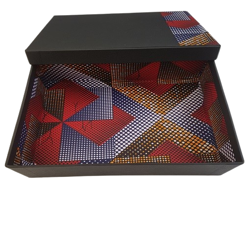 Simple African Gift Box featuring beautiful Ankara lining and a striking striped Ankara cover. This vibrant, high-quality gift box adds a unique touch to any  gift, making it perfect for special events, client and expatriate visitors to give them something to take back home from their trip and remember you by!
