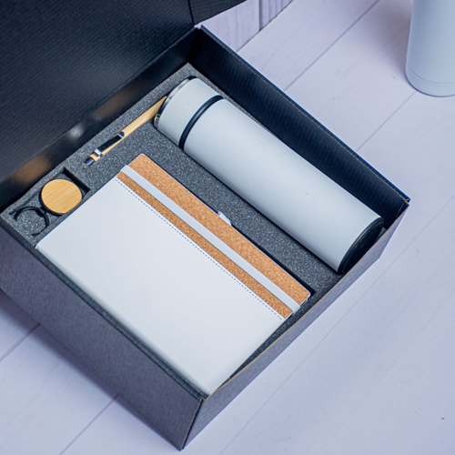 Elegant white side bamboo wooden gift hamper with premium wooden pen and keyholder. Perfect eco-friendly corporate gift, wedding favor, or special occasion present.